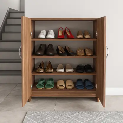 Combine style and functionality with this premium Wooden Shoe Cabinet. Unlike open racks, this furniture piece hides your footwear behind sleek doors, maintaining a clean and sophisticated look in your hallway or living room.